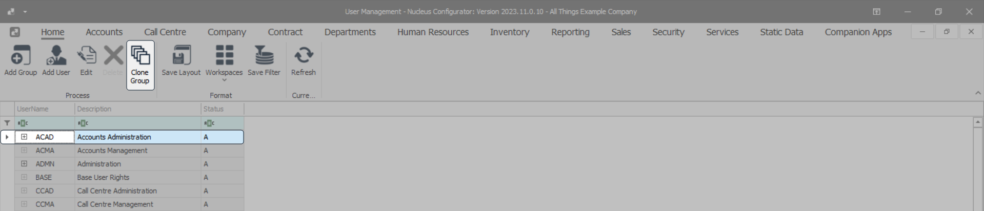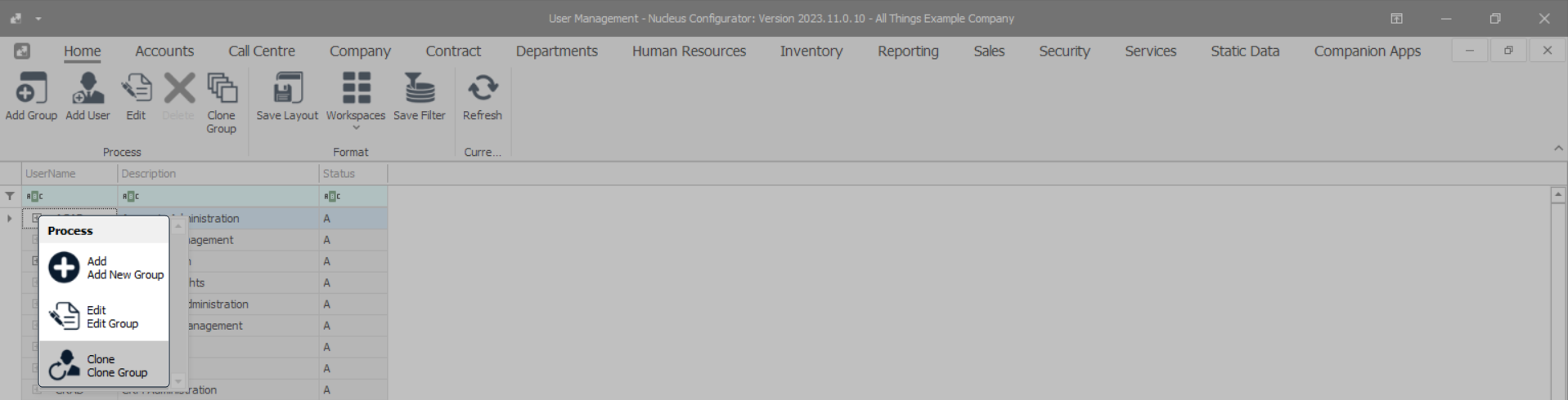 - Or right-click on the row of the Group you wish to clone and select Clone Group from the Process menu.