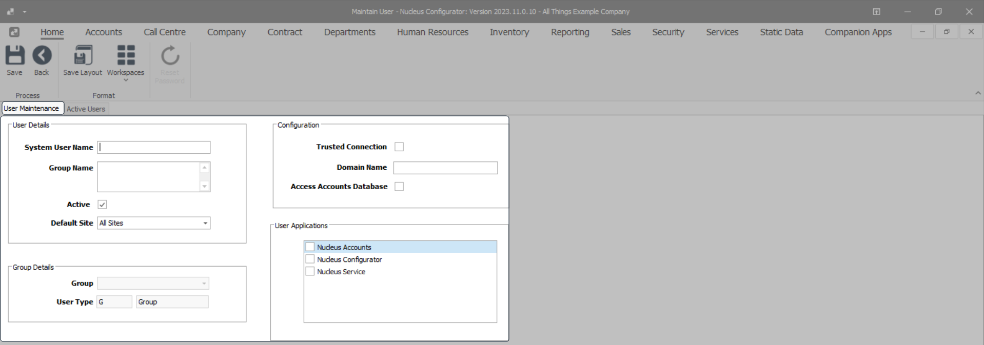 - Nucleus Configurator: You can tick this check box if the User Group will be allowed access to Nucleus Configurator.