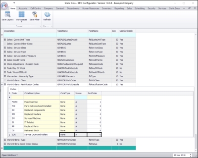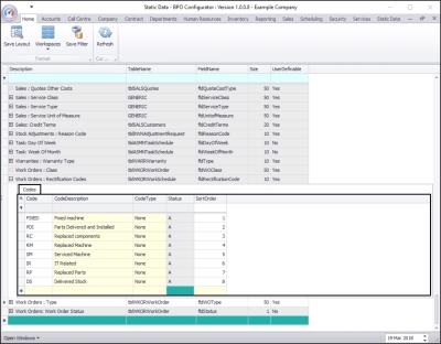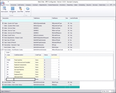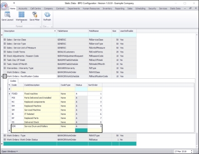 - Here you can view a list of work order rectification codes currently on the system.