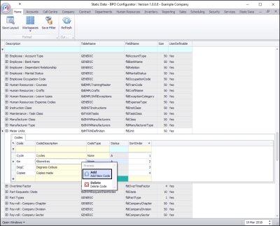 | Ribbon Access: Configurator > Static Data> Static Data |