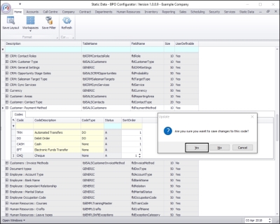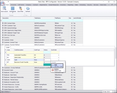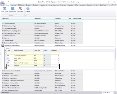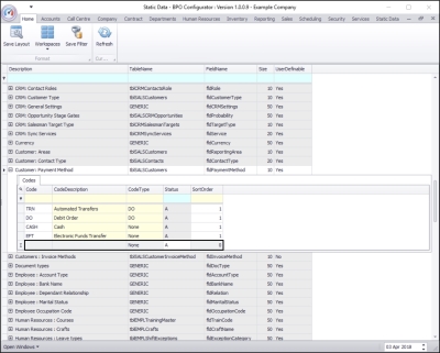 | Ribbon Access: Configurator > Static Data > Static Data |