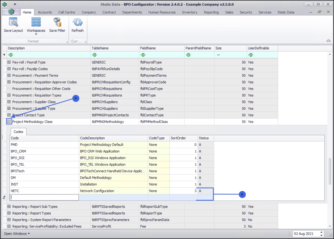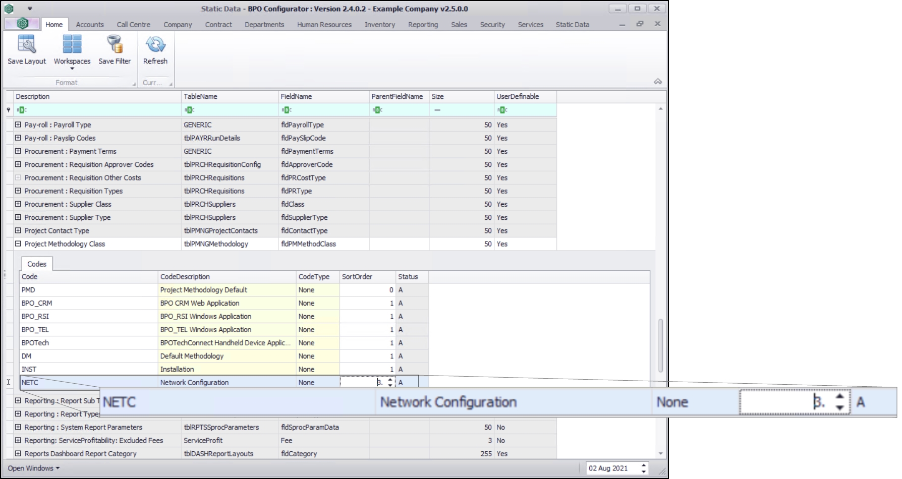 | Ribbon Access: Configurator > Static Data > Static Data |