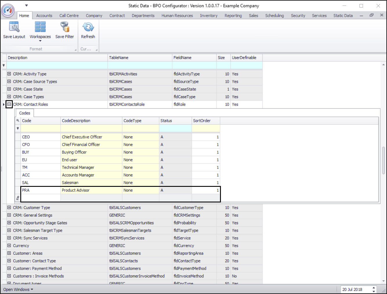- The CRM: Contact Roles Codes frame will be expanded.