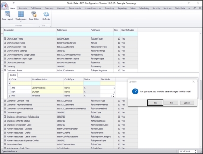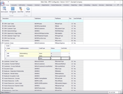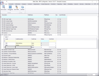 - The new Customer: Area code will be saved and a new row will be added to the Codes data grid.