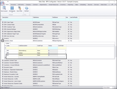| Ribbon Access: Configurator > Static Data > Static Data |
