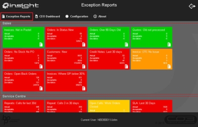 - Each Report will show the Actual items in exception, what the acceptable exception target is, and the deviation.