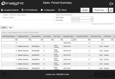 - You can email or export the report in the same way as the exception reports.