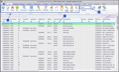 - In the Part Requests for the Site screen, note that the Site filter is set to a named Site (Example 3 above).