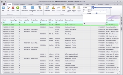 - In the Part Requests for the Site screen, note that the Site filter is set to a named Site (Example 2 above).