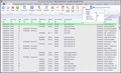 | Ribbon Access: BPO > Inventory > Part Requests |