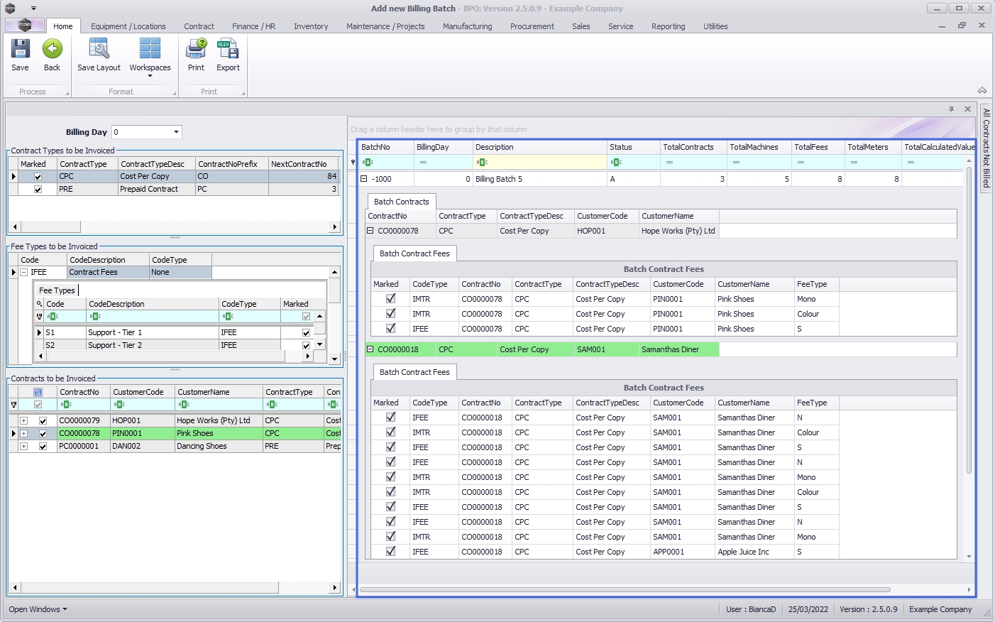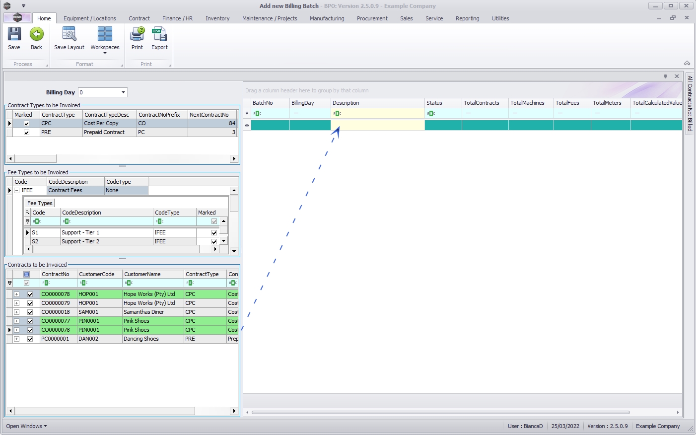 - Select the Contracts to be Invoiced within the Predefined Billing Batch.