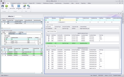 Items to be billed will be displayed on the left of the screen. You can select the parameters (Billing Day, Contract Type, Fees or Meters, Fee Types) to bill, then drag and drop them into an existing or new batch (on the right hand side of the screen).