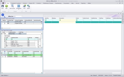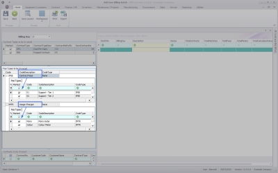 Items to be billed will be displayed on the left of the screen. You can select the parameters (Billing Day, Contract Type, Fees or Meters, Fee Types) to bill, then drag and drop them into an existing or new batch (on the right hand side of the screen).