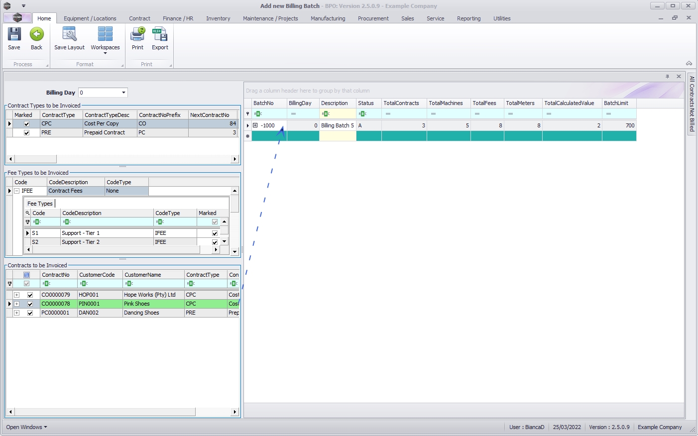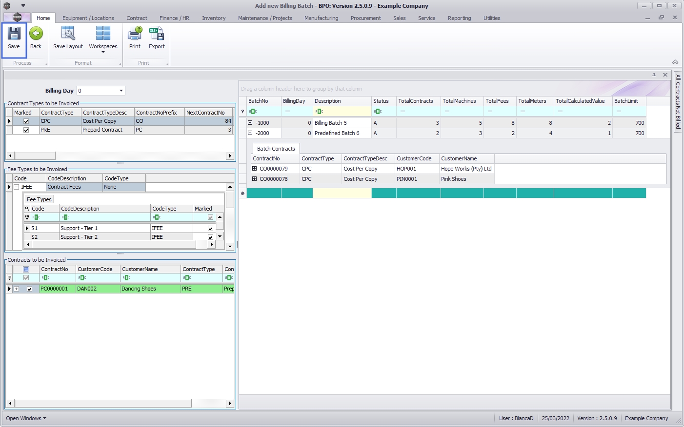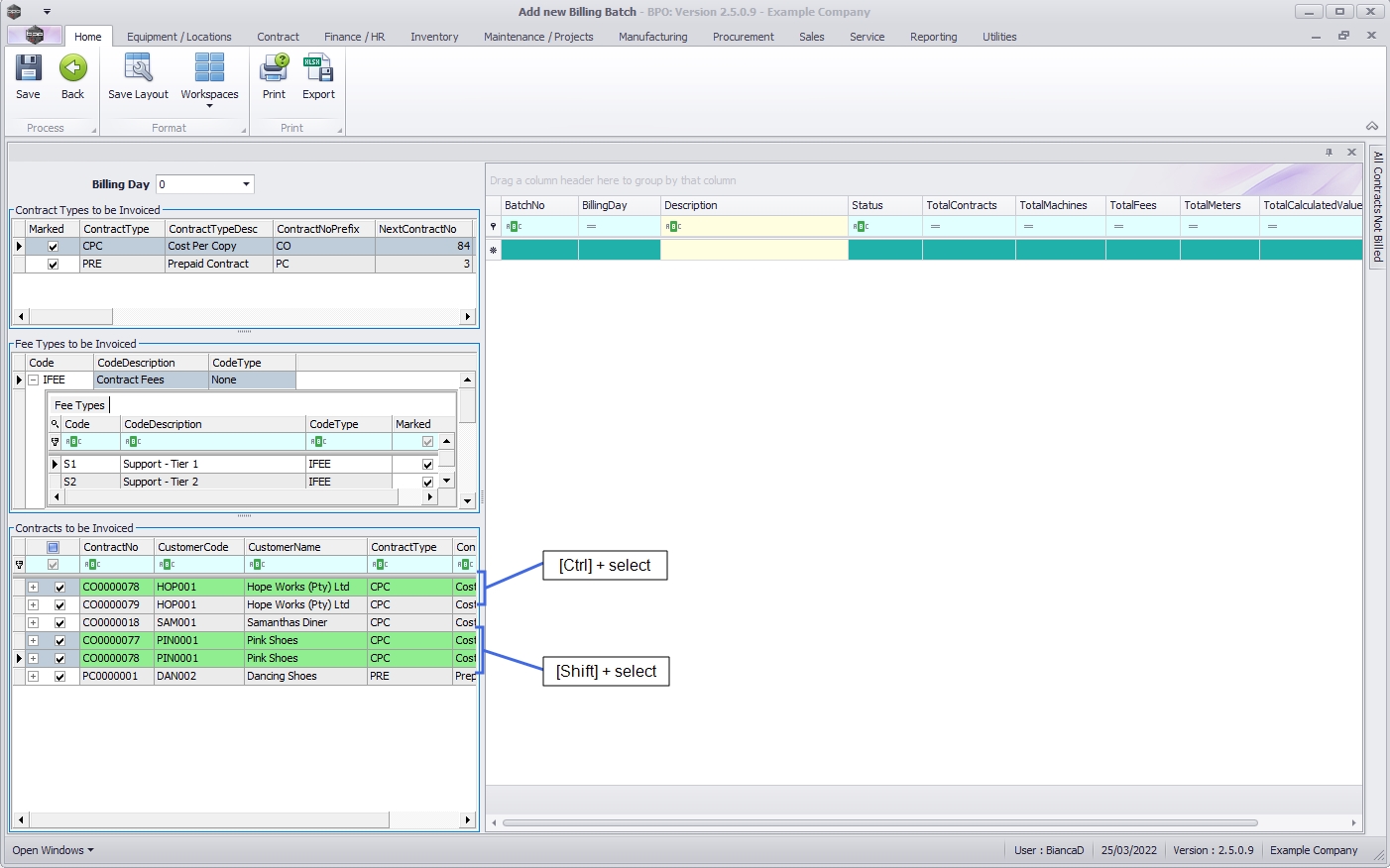 • Select the Contracts to be Invoiced within the Predefined Billing Batch.