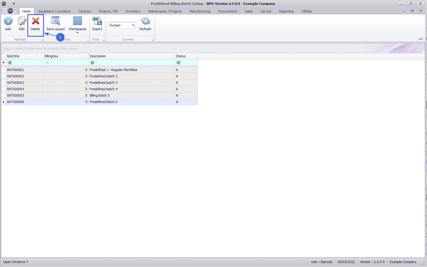 - The deleted batch will no longer display in the Predefined Billing Batch listing screen.