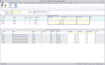 - The Usage Charges and Configuration frame will auto populate with the usage charge description details linked to the selected part if applicable.