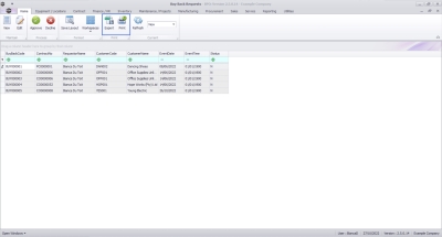 The ribbon action buttons will be available (bold) or unavailable (greyed out) depending on the status selection, and security right access level. The following functionality is available from this screen: