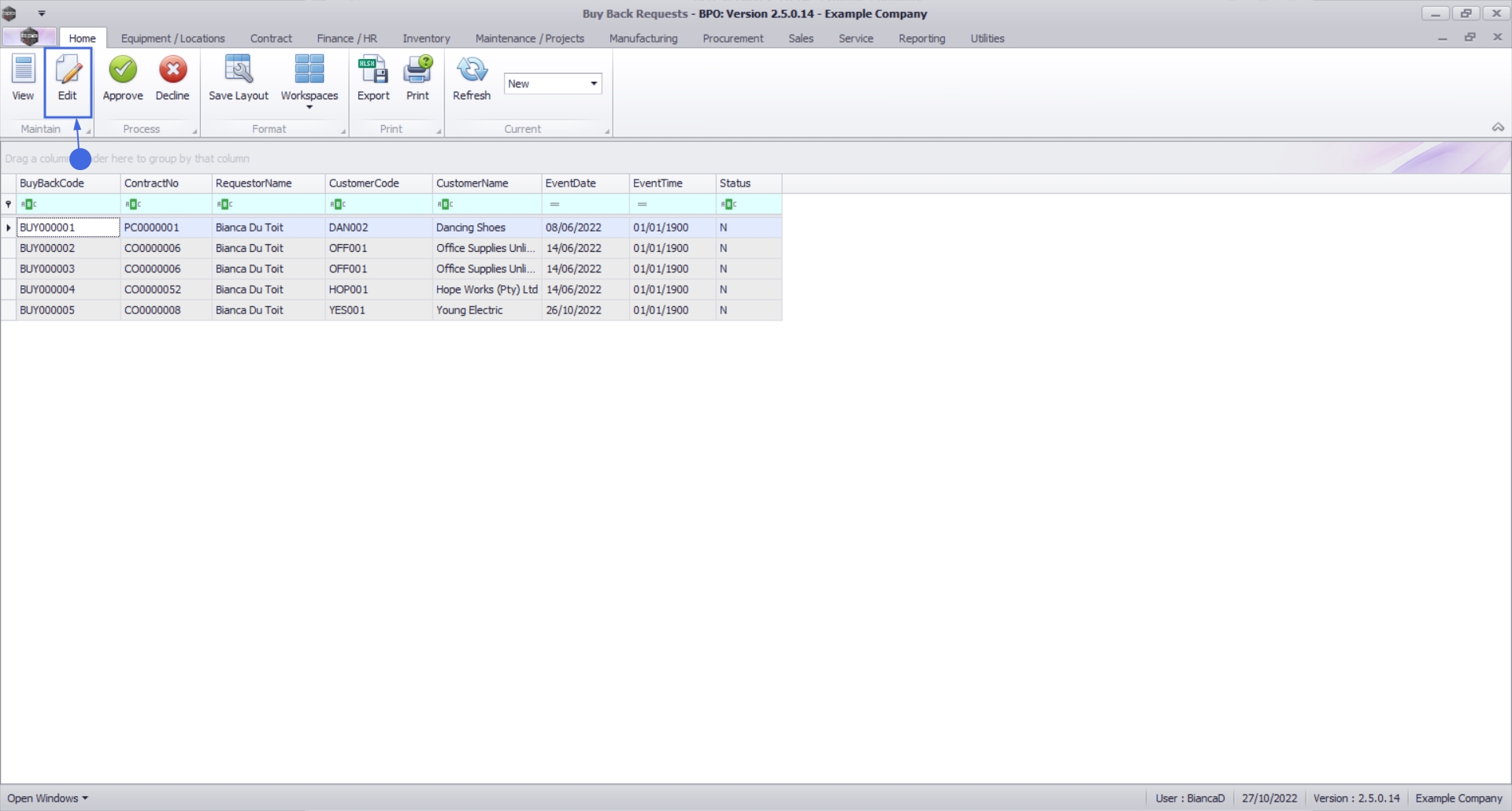 Buy Back Requests - Edit