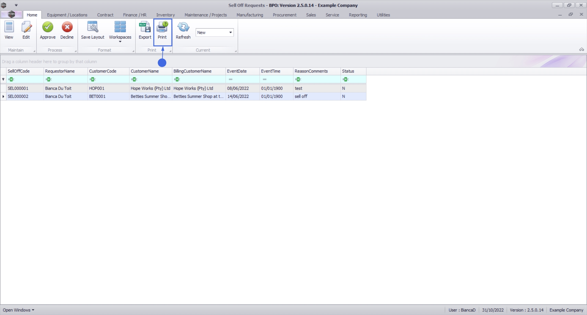 The Report Generation message box will come up, asking: Do you want to print the Sell Off request [sell off request number]?