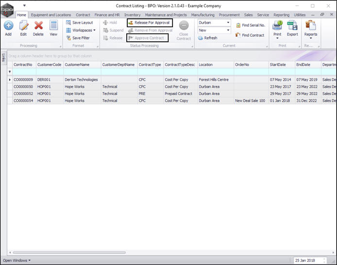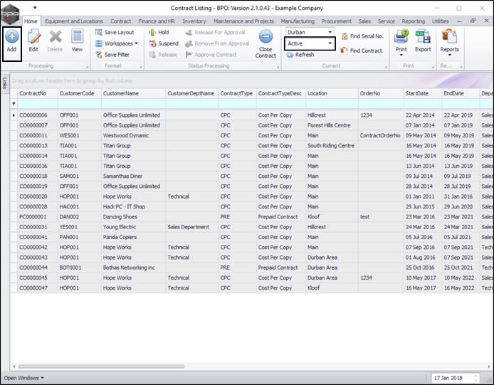| Ribbon Access: Contract > Contracts |