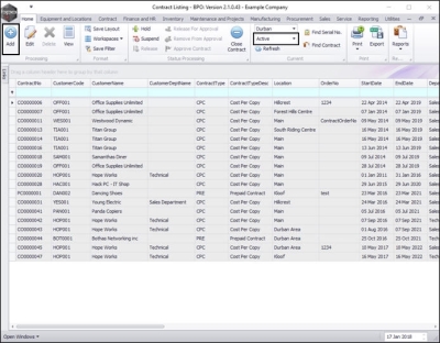 - By default, this screen will list all the Active contracts for the selected site.