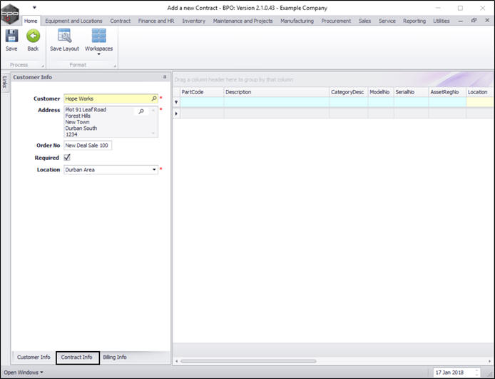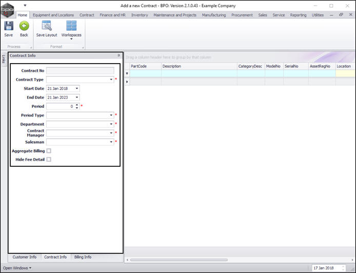 - Contract No: The contract number is generated by the system (where configured in the Contract Type set up).