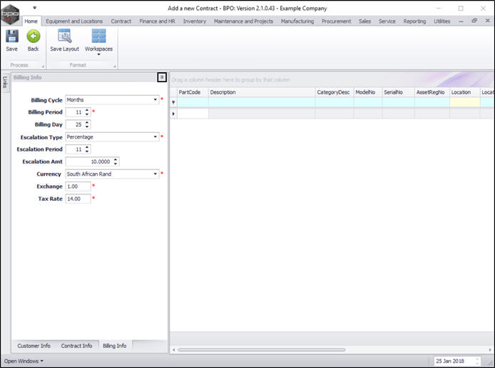 - When you have finished editing the contract info details, click on the Billing Info tab.