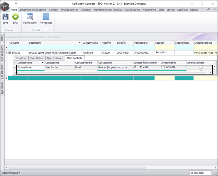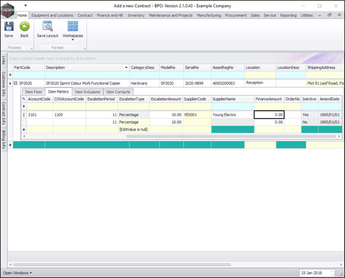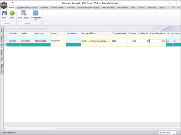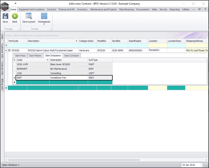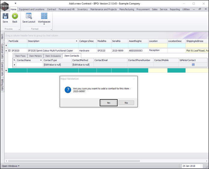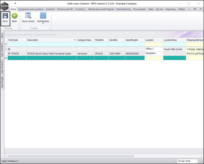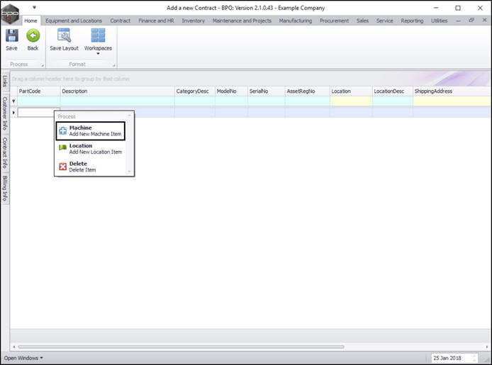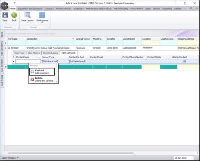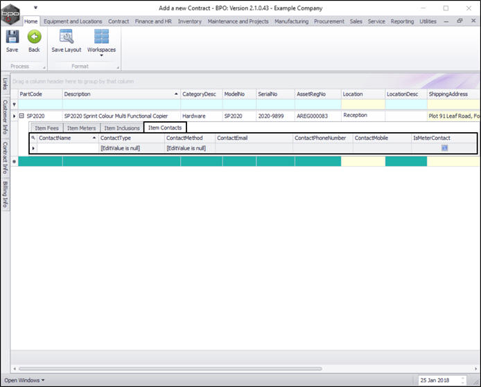 - You can continue to add contract machine items or contract location items as required, however additional items can also be added later.