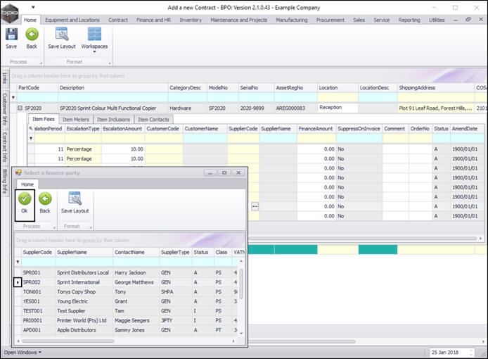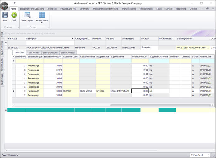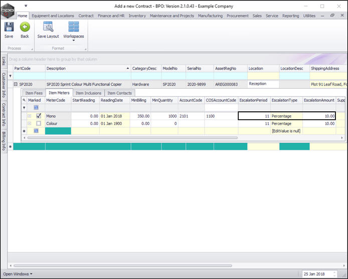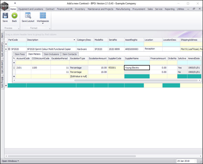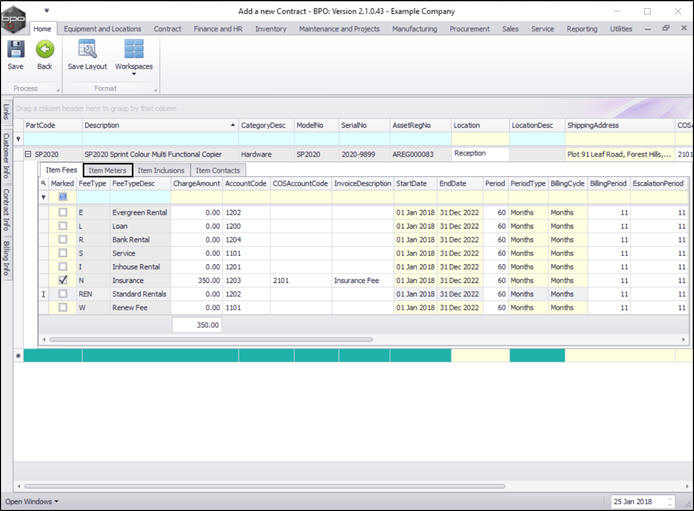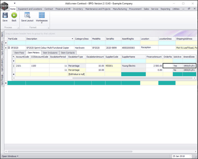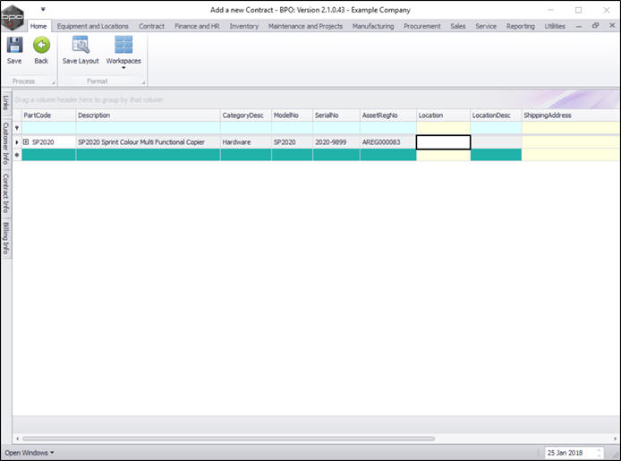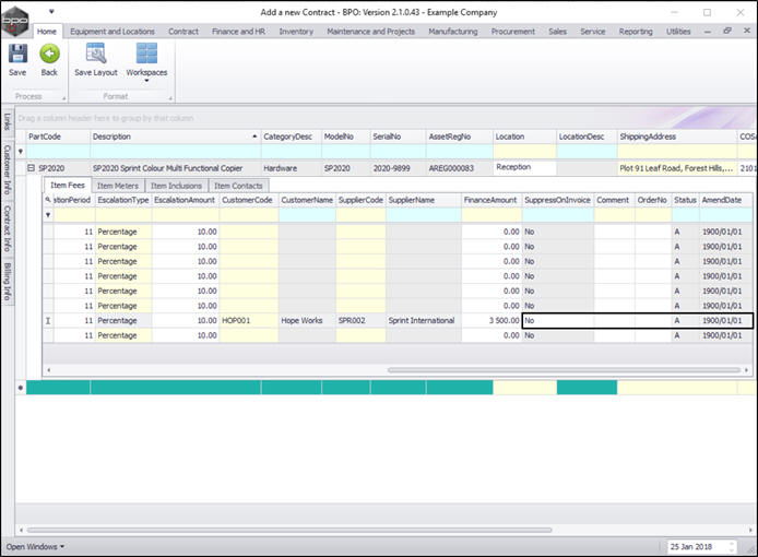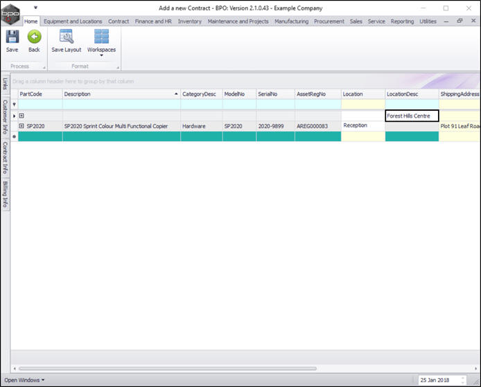 - You can continue to add contract machine items or contract location items as required, however additional items can also be added later.