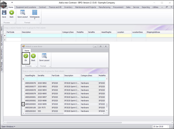- Click on the row selector in front of the machine that you wish to link to this contract.