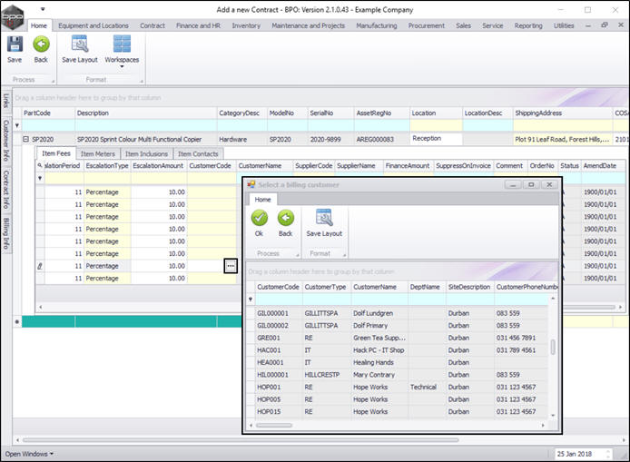 - Customer: Click on the search button and select the customer from the Select a customer for this contract pop up screen.
