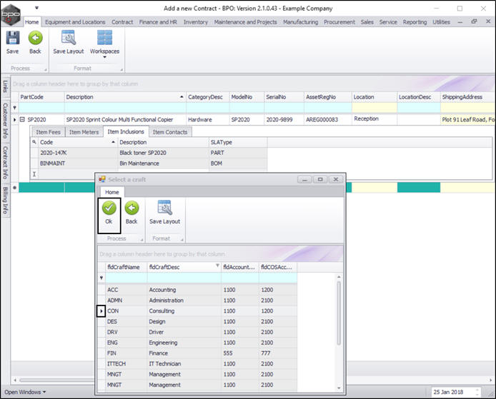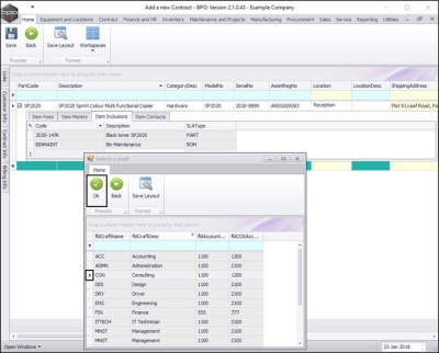 - Click on the row selector in front of the craft you wish to add to this contract as an inclusion.