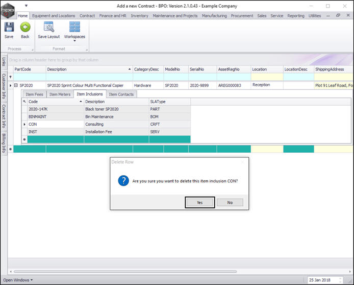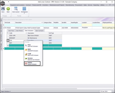 - Right click in the row of the item inclusion that you wish to delete from the contract.