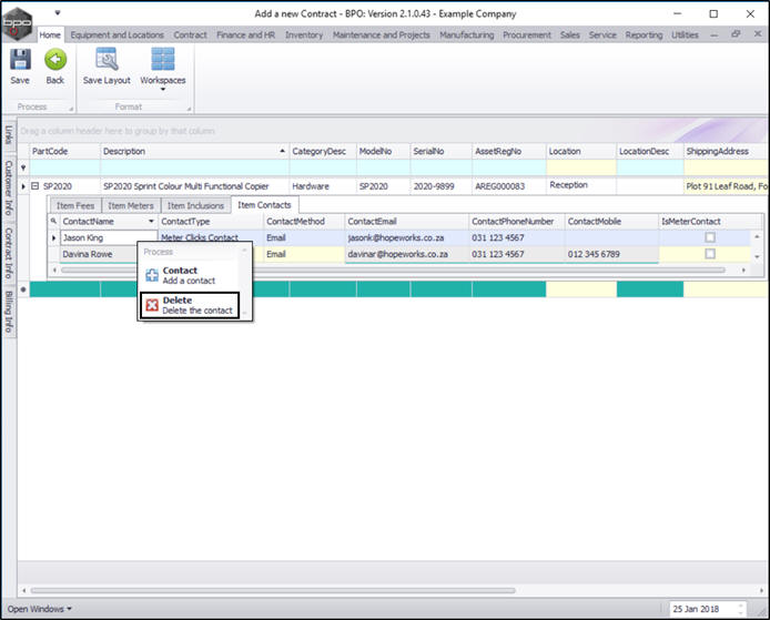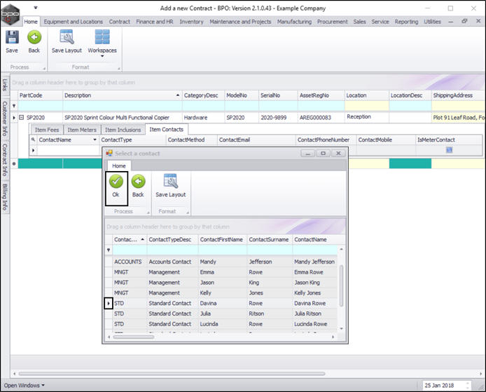 - You can add further contacts to this frame by right clicking anywhere in a row of the Item Contacts frame and following the same process as above.