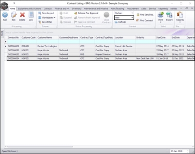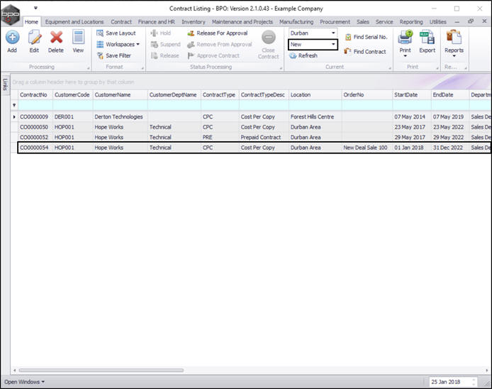 The Contract Listing screen will be displayed.