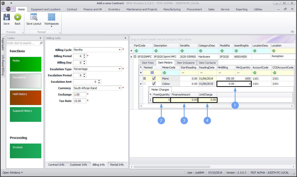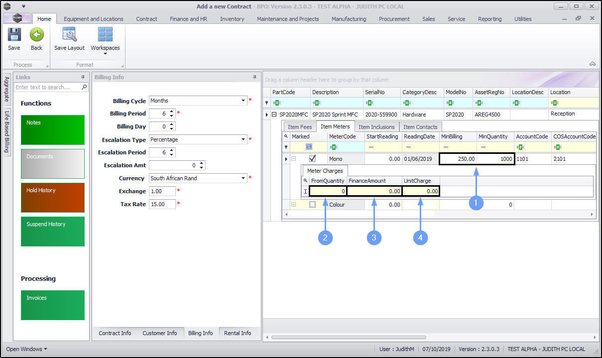 - Unit Charge: Type in the unit charge for the meter (charge per copy).