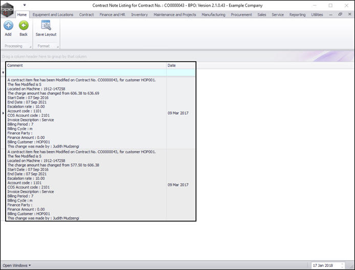 - You will return to the Contract Note Listing for Contract No.: screen.