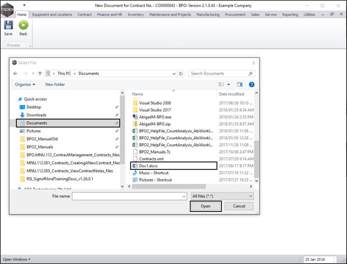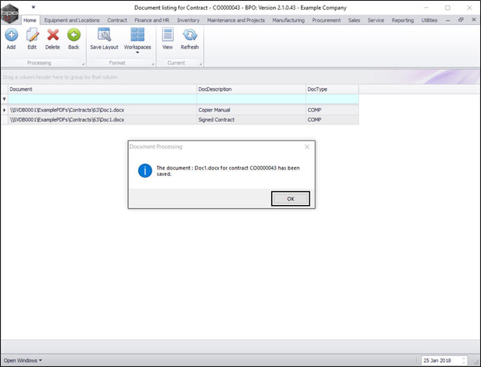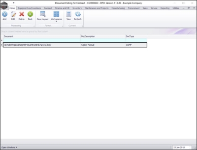 - You can now see the selected document has been added to the Document listing for Contract - [] screen.