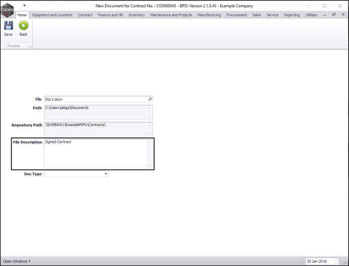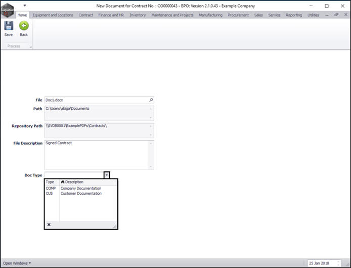 - The Repository Path is auto populated according to the path that has been set up in the company configuration.