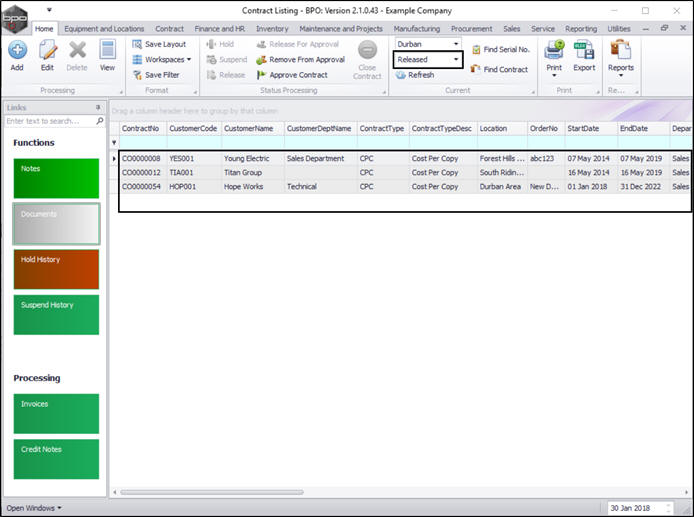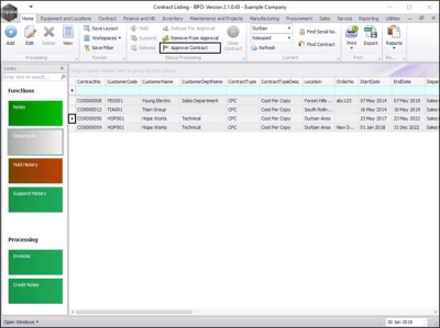 - The contract will be removed from the Contract Listing screen where the status is set to Released.