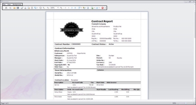 The Contract Report shows a brief overview of information pertaining to a particular contract e.g., the contract customer and billing information, information regarding the items and any item fees linked to the contract.