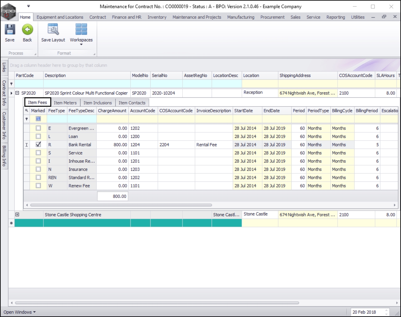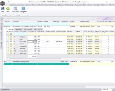 - The contract will be saved and you will return to the Contract Listing screen where the status defaults to Active, or will be set to the Status you last selected.