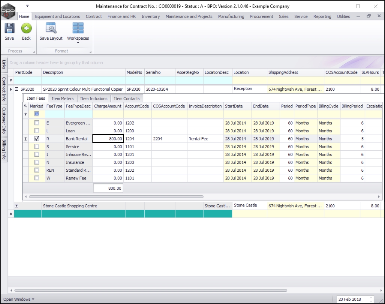 - In this example, Charge Amount in the row of the Bank Rental Fee has been selected.