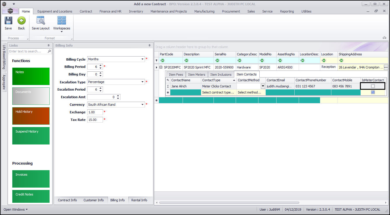 - Ensure you have the contract item selected and then click on the Item Contacts tab.