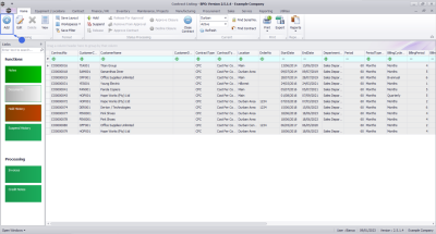 - The contract will be saved and you will return to the Contract Listing screen where the status defaults to Active, or will be set to the Status you last selected.