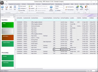 When the new prepaid contract has been set up and saved, the type of contract that has been selected (Prepaid) will be indicated in the Contract Type and Contract Type Description columns in the Contract Listing screen.