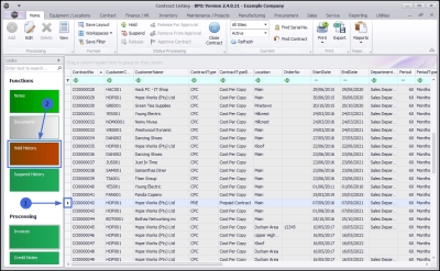 - Select the row of the contract where you wish to view the Hold History.