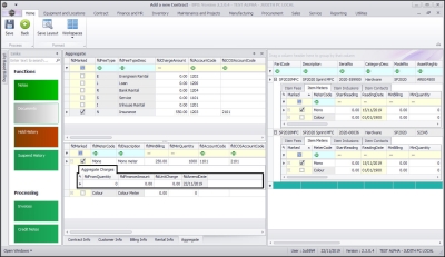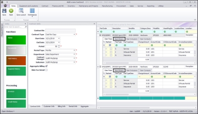 The Item Fees frame displays Contract Item Fees that can be linked or are linked to a contract item e.g., a machine. Item Fees linked to a contract item will appear on the contract invoice when billing.