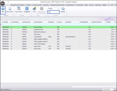 - You will return to the Contract Invoices screen where you can now view the new manual invoice which now has an invoice number allocated to it.