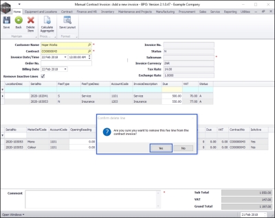 - Are you sure you want to remove this fee line from the contract invoice?